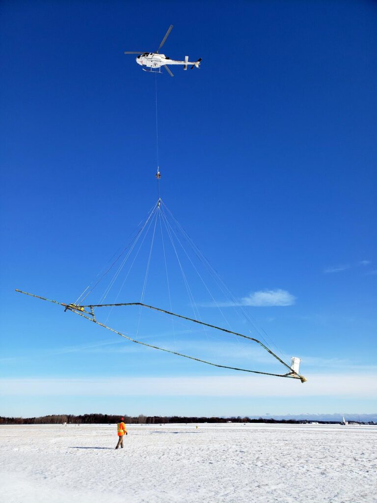 The helicopter will fly roughly 200 feet above the ground as the system measures differences in the Earth’s electrical properties and magnetic fields examining bedrock depth, soil and rock composition, aquifer locations and structure, and how groundwater moves and connects to rivers and lakes.